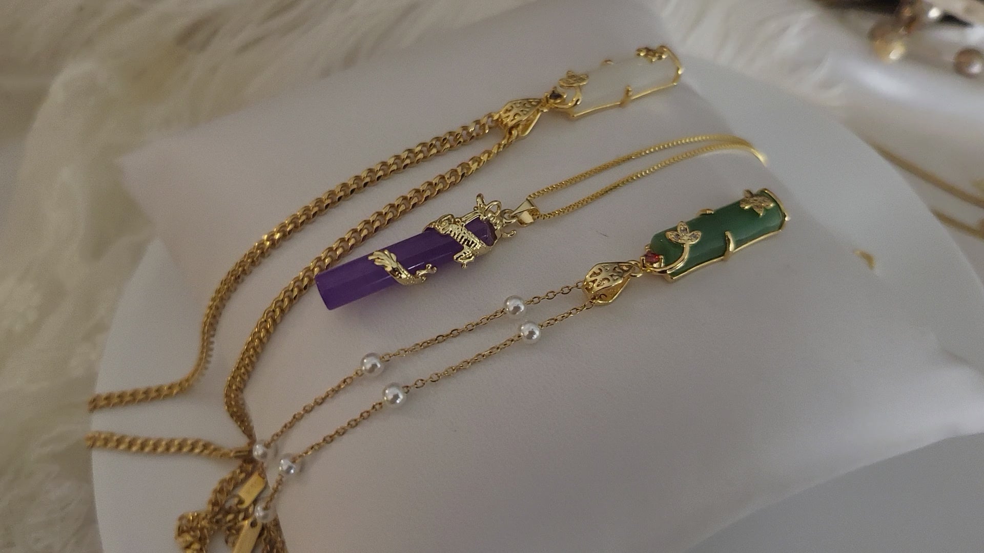 Add some meaning to your jewelry collection with our Gold Filled Green Jade Necklace. This pendant necklace combines elegance and significance, crafted with genuine jade and a gold filled chain. A must-have for any quirky fashionista!