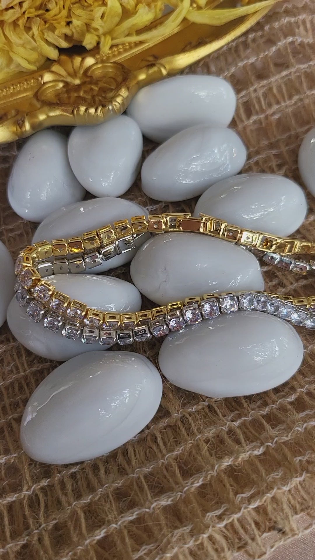 Add some sparkle to your style with this Gold Square Diamond Tennis Bracelet. Your hot wife will love the luxurious feel of the gold and silver design, all while it stays in place with its permanent houston clasp. Upgrade your bracelet game today!